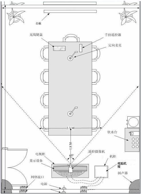 會場參加會議室的方式大型會議室參會人員一般在15人以上60人以下,音視頻輸出效果要求較高,除配備視頻會議系統(tǒng)外,一般還要配備會議音響系統(tǒng)、多麥克系統(tǒng)、顯示系統(tǒng)等。